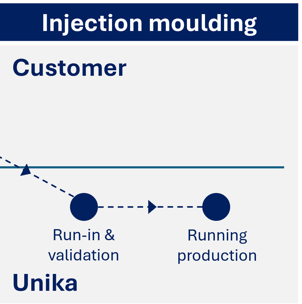 At Unika, we offer injection moulding both with and without our own tools. As a customer, you can choose to use injection moulding tools that are: