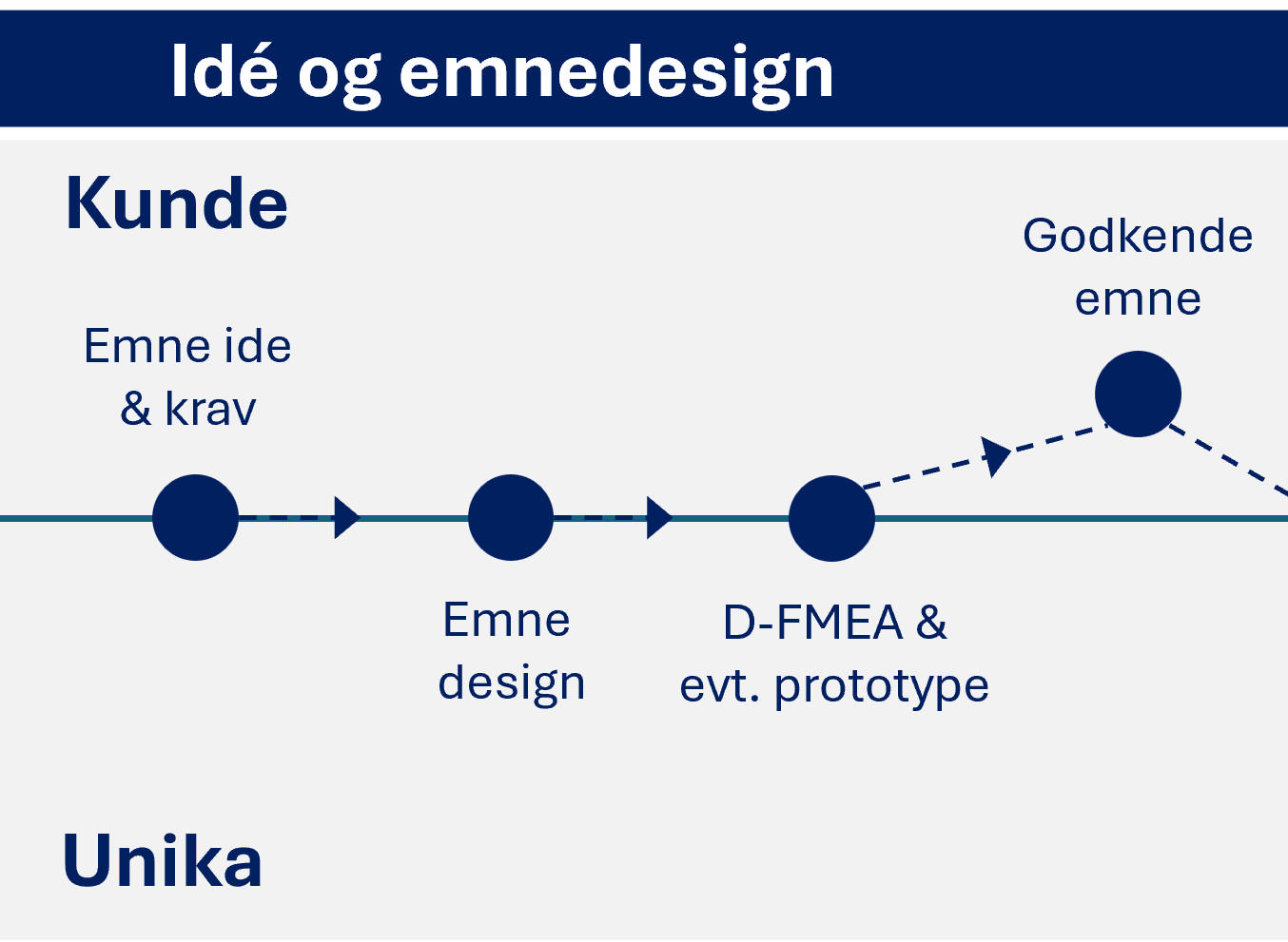 Vi tilbyder f.eks. en design-workshop, hvor vi rådgiver ift. emnedesignet og kan også arbejde sammen med kundens designere. Vi arbejder ud fra principperne i Design for Manufacturing and Assembly (DFMA), hvilket betyder, at vi designer med fokus på enkel og omkostningseffektiv produktion og montage. Det minimerer spild, forenkler værktøj og sikrer den bedste løsning.