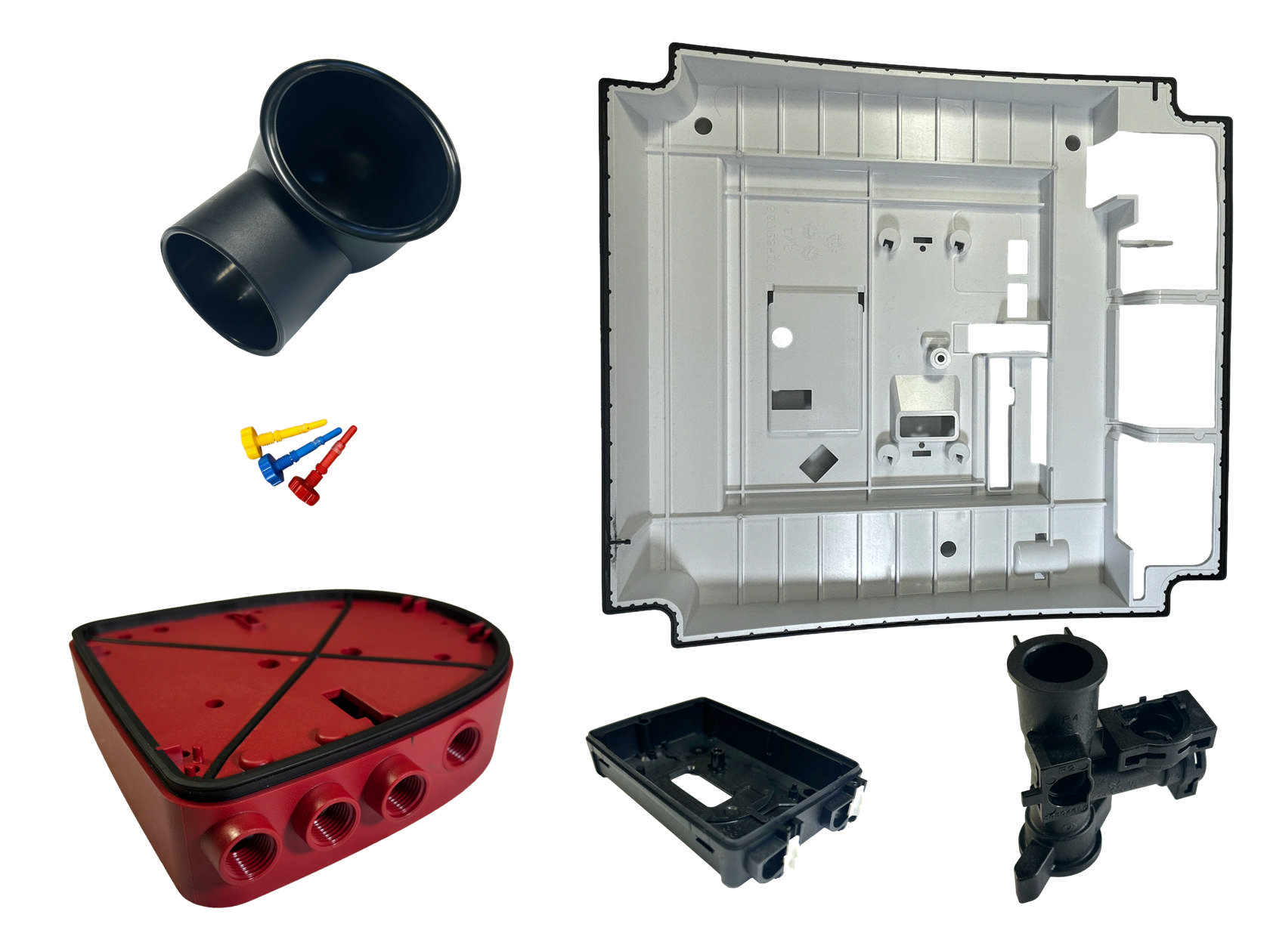 - 1K og 2K støbning - hvor vi indstøber div metal og messing dele som f.eks. bøsninger samt overstøber med pakning